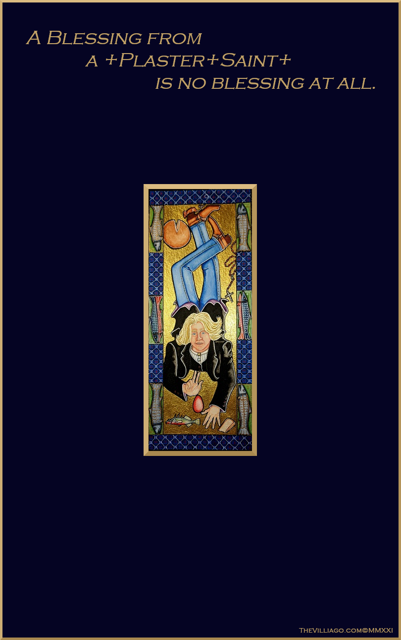 The Plaster Saint is a watercolour painting with a background, gilded in 24 carat gold which I use as a logo for my business.